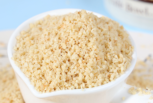 2.放在案板上,用刀切碎成巴旦木碎。
